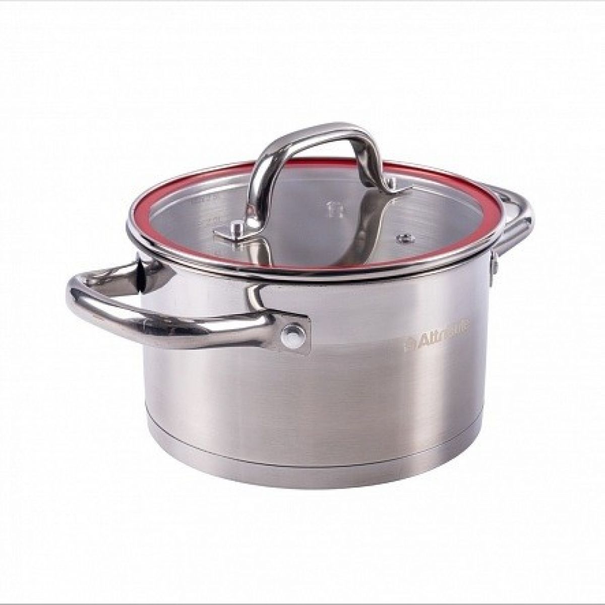 Кастрюля нержавеющая сталь 4,8л D-22 стеклянная крышка SCARLET