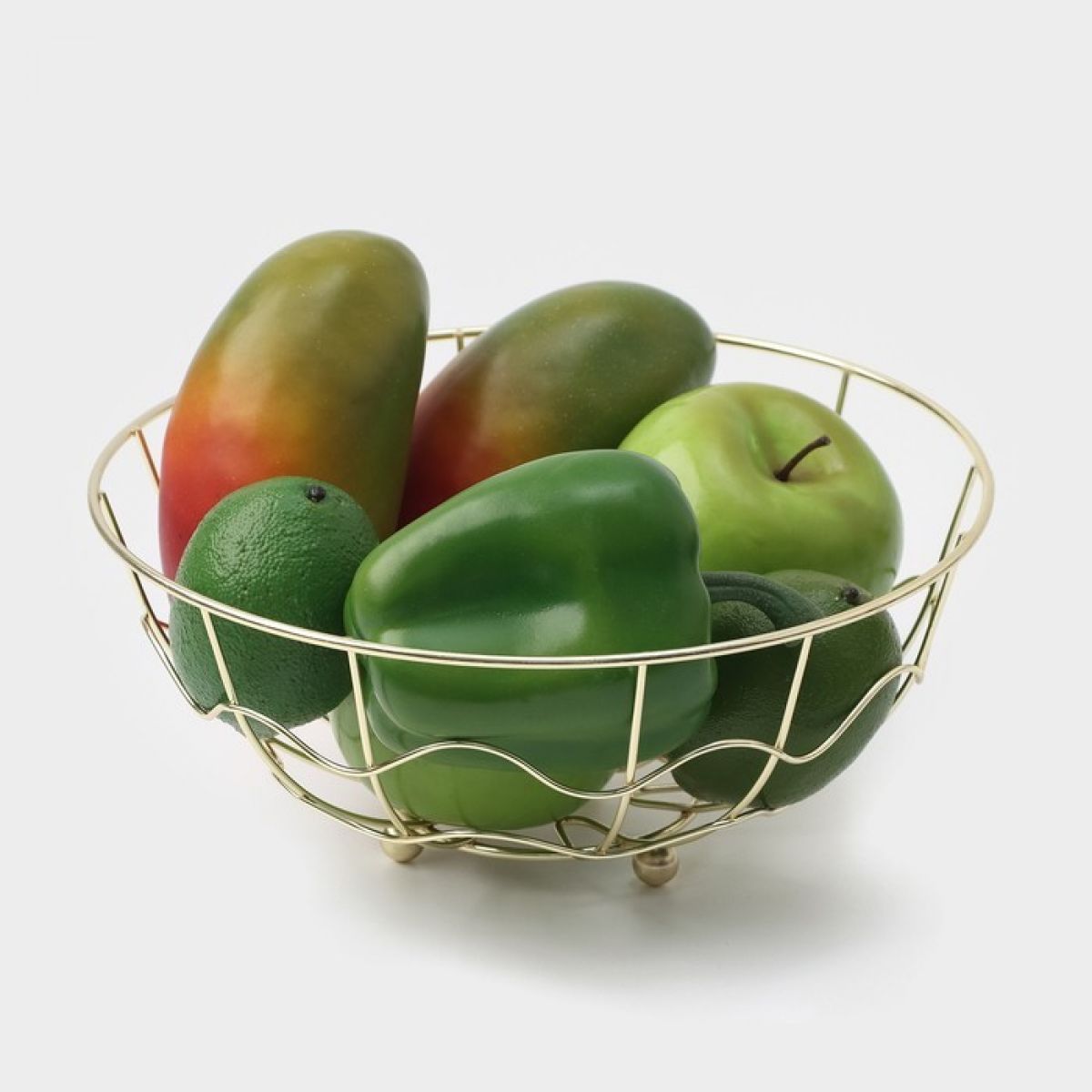 Ваза д/фруктов нерж 23*23*9 см <Солнце>, золотой