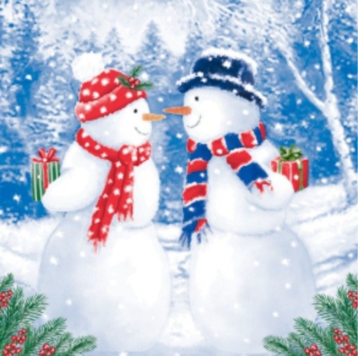 Салфетка бумажная 20л 33*33 3сл Снеговики с подарками