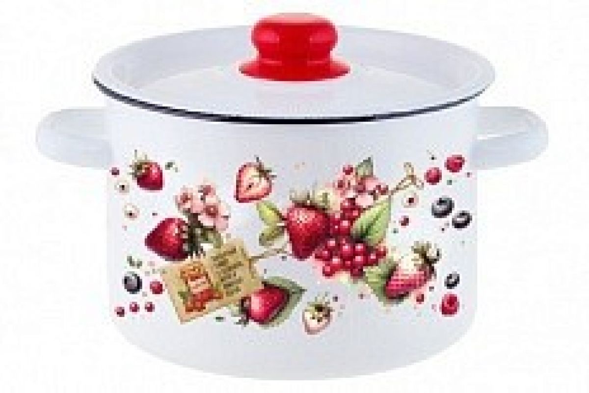 Кастрюля эмалированная сталь 2,9 л цилиндр Ягодки ТМ Appetite