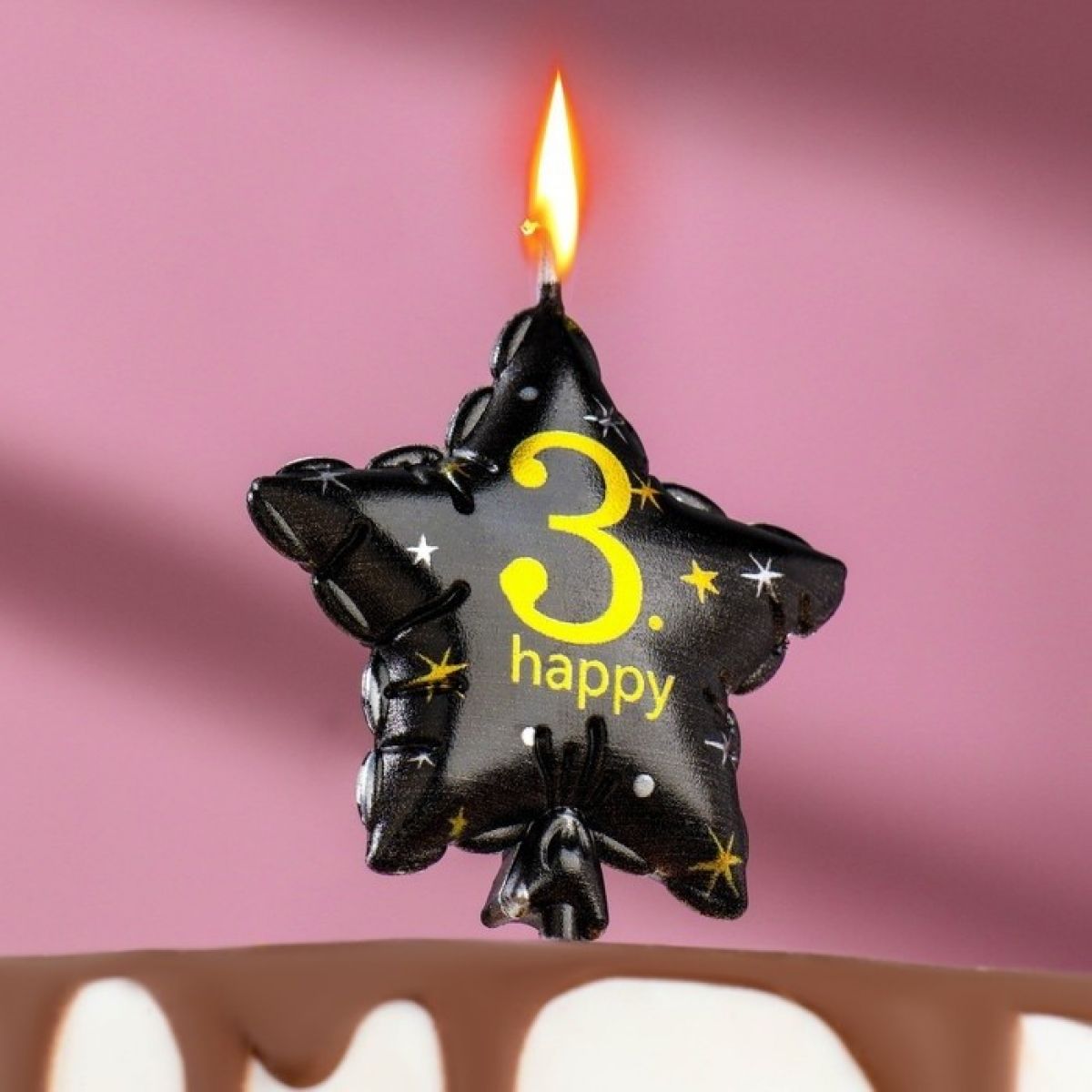 Свеча для торта цифра "3" Воздушный шарик 5,5см Черная с золотом