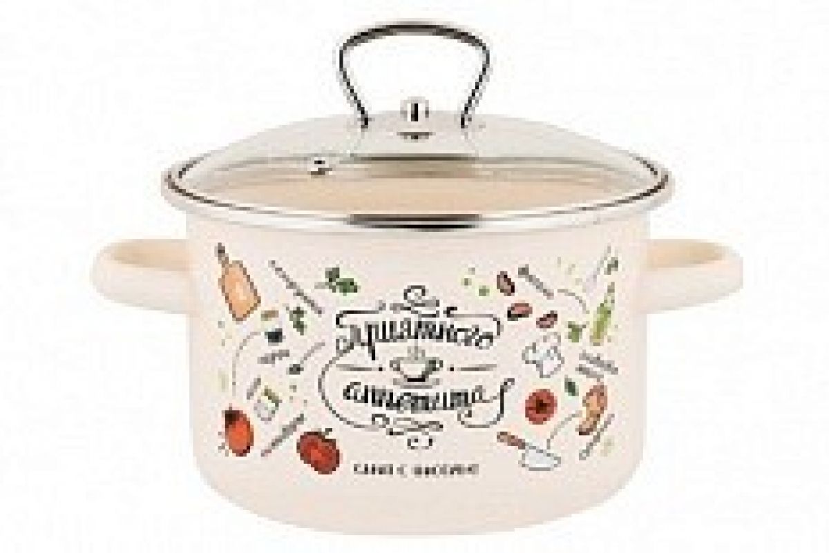 Кастрюля эмалированная сталь 2,0л цилиндр Приятного аппетита, стеклянная крышка Appetite
