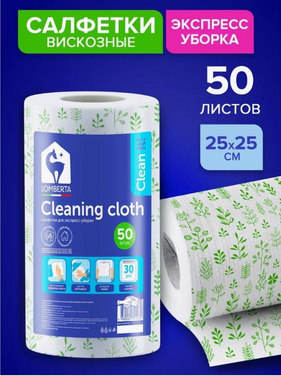 Салфетка для уборки в рулоне 50 шт 25*25 см Lomberta