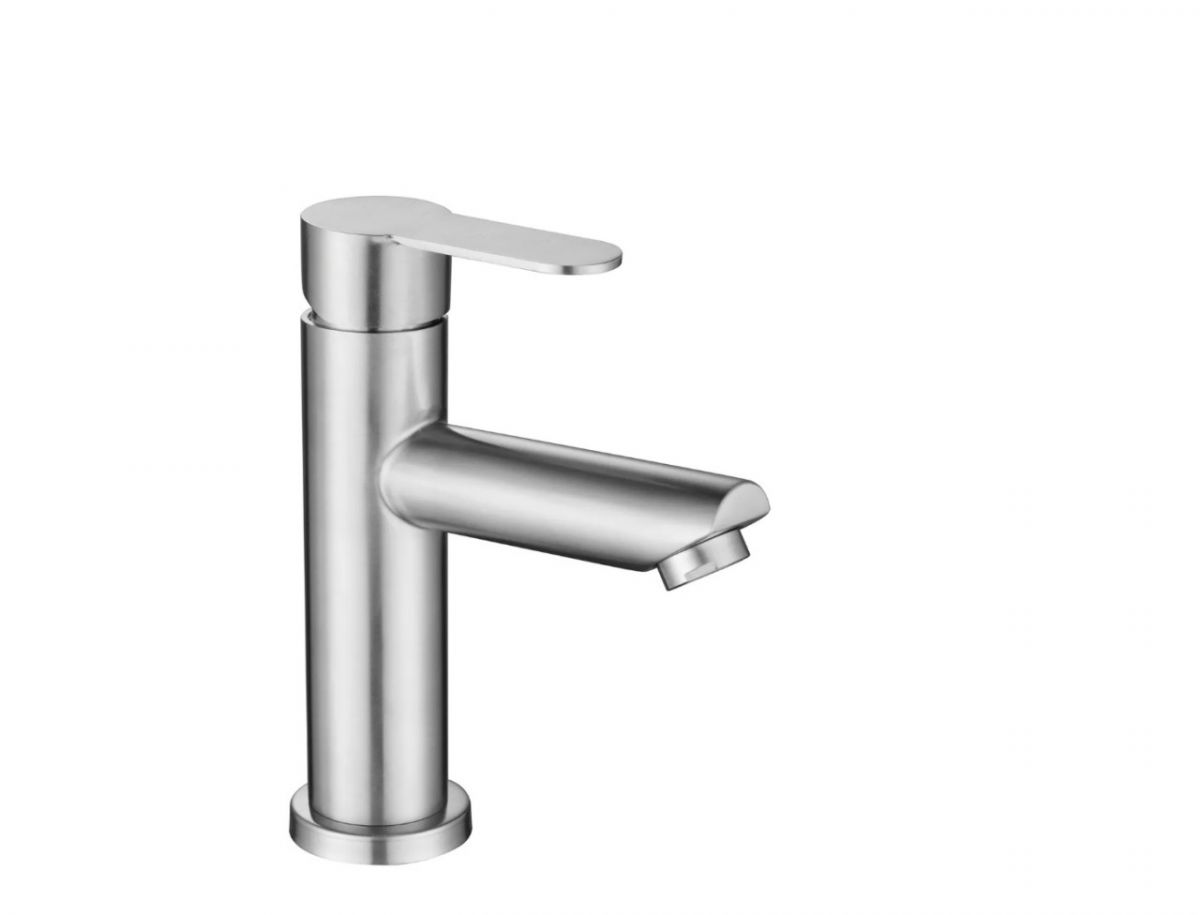 Смеситель для умывальника рычажный 35мм на гайке излив 10см нержавейка Т40101 OUTE