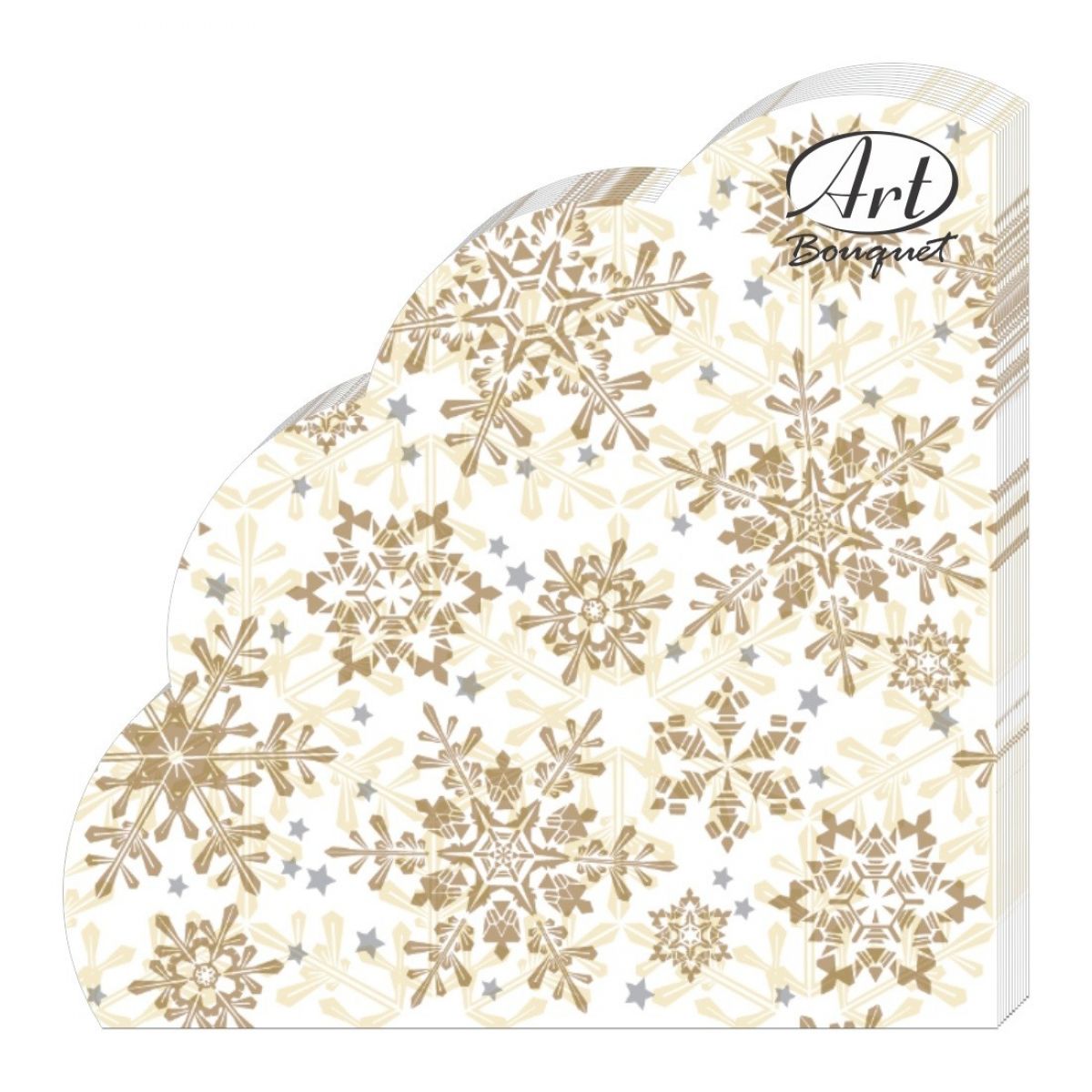 Салфетка бумажная 12л 32см 3сл Золотые снежинки на бежевом